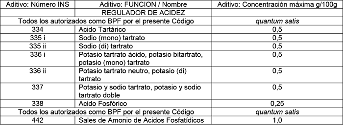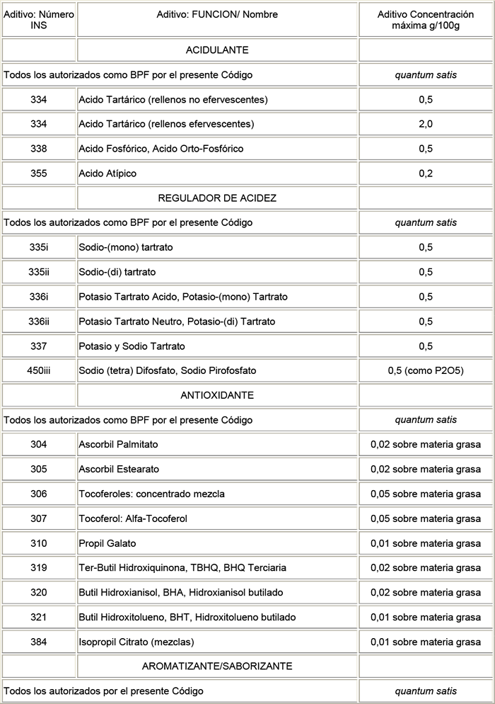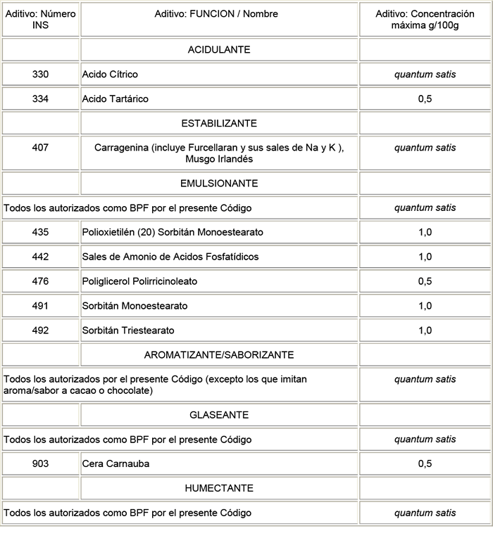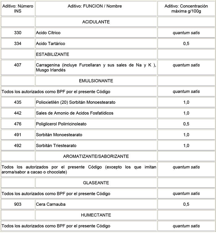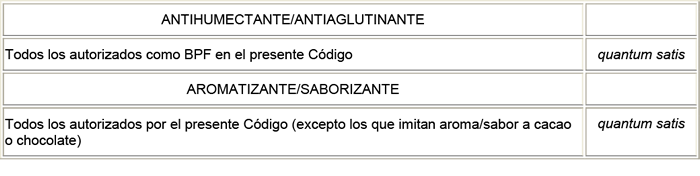 Para el caso de Cacao en Polvo Alcalinizado/Alcalino se admiten además los aditivos que se detallan a continuación: