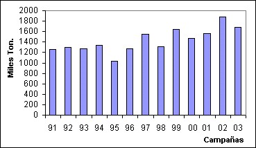 llegando en el año 2003 a 1,7 millones de hectáreas.